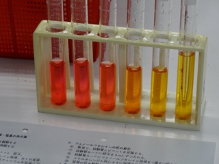 2 4 メチルオレンジ メチルオレンジは 強酸性溶液で赤色 おおむねph 4 以上の溶液で黄色を呈する phによって 図4 のような 構造の変化がおこる 高等学校の化学では 変色域が酸性側にある酸塩基指示 薬の代表例としてメチルオレンジを取り扱うこと.